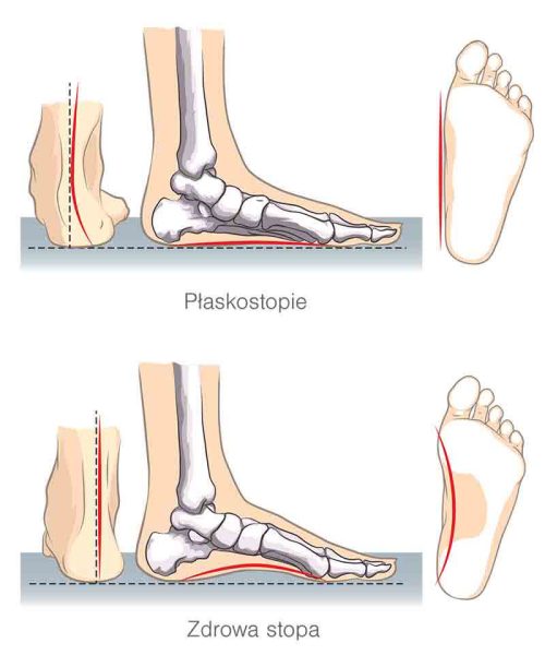 - Urazy – uszkodzenie więzadeł lub mięśni stopy może spowodować utratę jej naturalnego łuku.