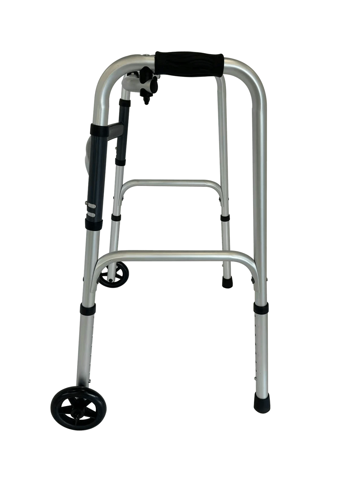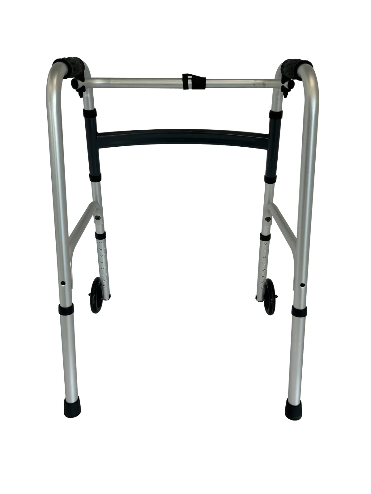 Istotna jest też prosta obsługa – składanie balkonika na przycisk wspiera codzienną organizację – balkonik łatwiej odstawić w bezpieczne miejsce, schować do bagażnika lub przewieźć na rehabilitację.