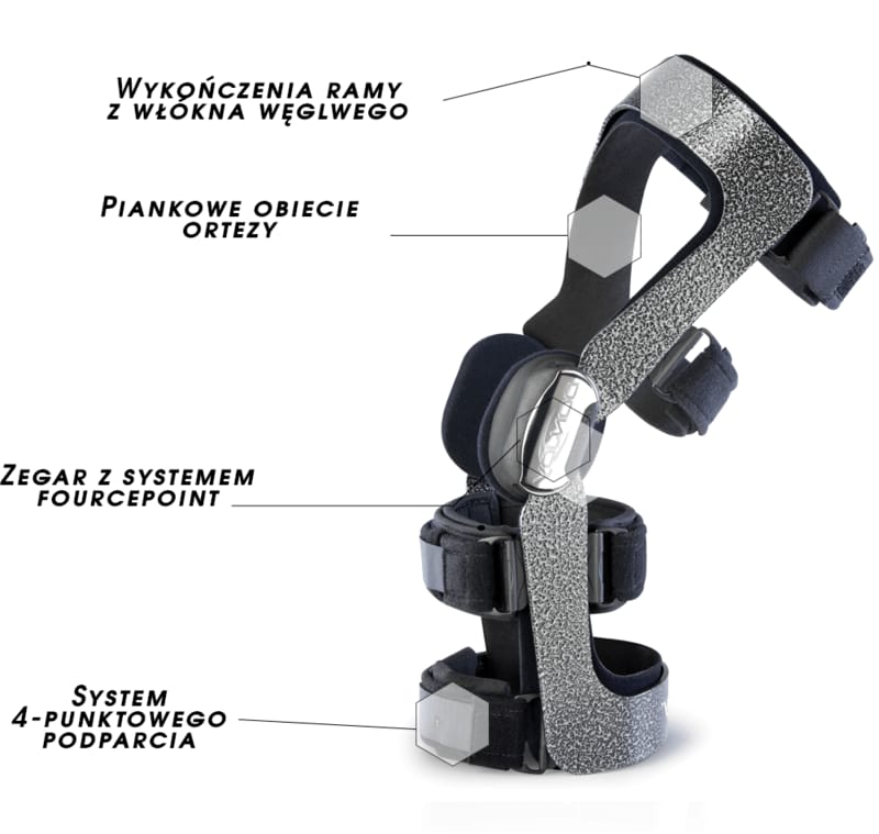 to najwyższej jakości wyrób medyczny wykonany z aluminiowej ramy (6061 T6) z zegarem FourcePoint wskazany w przypadkach umiarkowanej i ciężkiej niestabilności. Dzięki zastosowaniu lekkich i wytrzymałych materiałów i opatentowanemu systemowi 4-punktowego podparcia DonJoy, stabilizator Armor FourcePoint, gwarantuje niebywały komfort w codziennym życiu, także w przypadku intensywnego użytkowania. Możliwość wyboru jednego z siedmiu rozmiarów (od XS do XXXL)oraz wariant na lewą oraz prawą nogę pozwalają na dobór odpowiedniego stabilizatora przez każdego pacjenta.