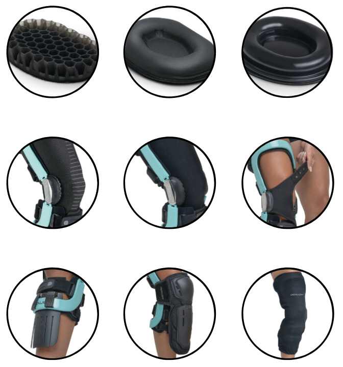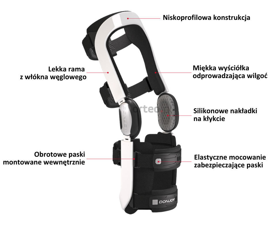 | – | silikonowe podkładki kłykciowe utrzymujące ortezę na właściwym miejscu |
