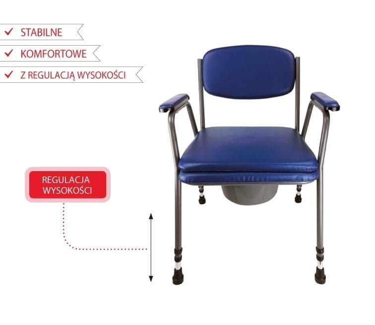 Krzesło toaletowe przeznaczone jest dla osób niepełnosprawnych ze schorzeniami narządów ruchu, osób starszych jak również osób, które mają problem z korzystaniem ze standardowej muszli klozetowej. Ułatwia i pomaga podczas codziennych czynności toaletowych, fizjologicznych. Krzesło toaletowe tapicerowane przeznaczone jest głównie dla osób wrażliwych na ucisk, czujących dyskomfort przy korzystaniu ze standardowego krzesła toaletowego, dla osób ceniących sobie komfort oraz wysoki poziom higieny. Szczególnie polecane po urazach stawu biodrowego.