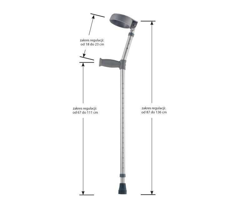 Zakres regulacji przedramienia: 18 cm – 23 cm