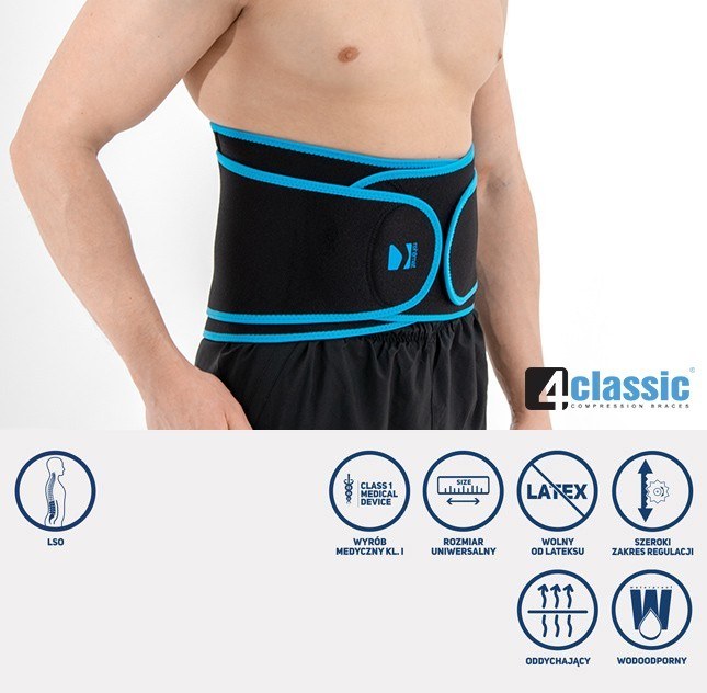 Stabilizuje odcinek lędźwiowy kręgosłupa przez wzmocnienie ściany mięśni brzucha; ogrzewa.