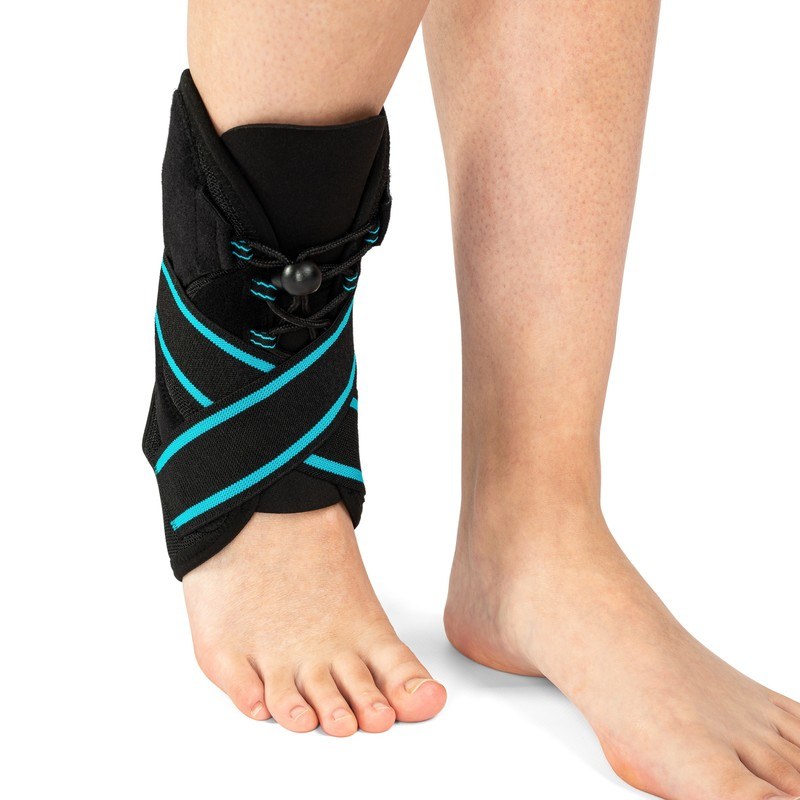 Orteza stawu skokowego składa się ze sznurowanego buta wraz z usztywnieniami bocznymi oraz systemu taśm zabezpieczających przed przesunięciem i skręceniem kości skokowej.