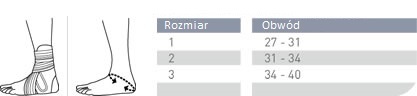 Rozmiar dobieramy mierząc obwód stawu skokowego przez piętę.