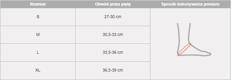 | Rozmiar | Obwód przez piętę | Sposób dokonywania pomiaru |