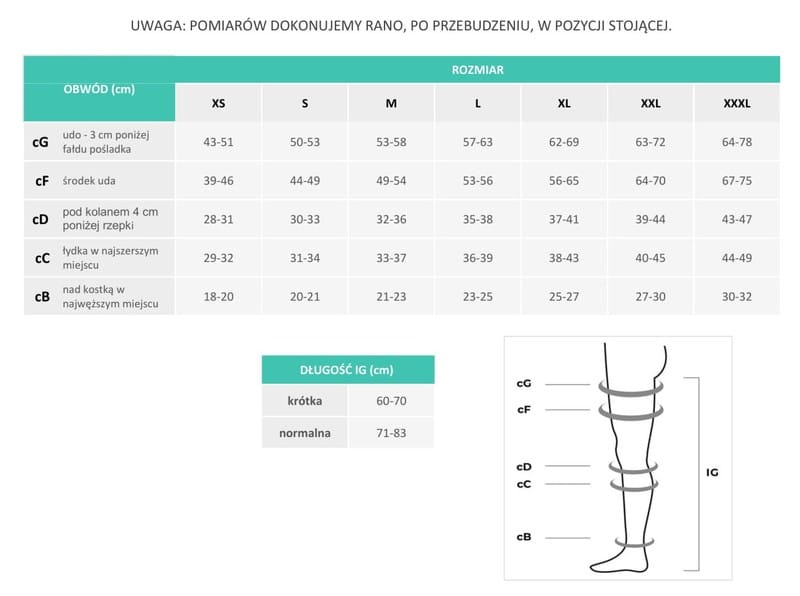 Dobór klasy kompresji, rozmiar i stosowanie rajstop medycznych uciskowych II klasy kompresji należy skonsultować z lekarzem. W razie wystąpienia ostrego bólu lub podrażnienia skóry trzeba zaprzestać noszenia i zgłosić to lekarzowi.