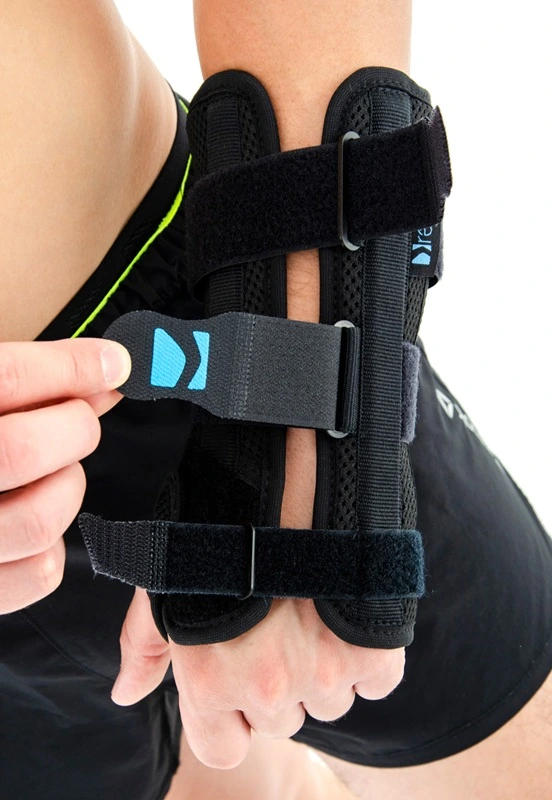 Mocowanie wyrobu na kończynie odbywa się przy użyciu dwóch taśm przedramienia oraz jednej taśmy dłoniowej. Zakres regulacji zapięcia jest bardzo duży i dzięki temu gwarantuje on duże możliwości regulacji i stabilizacji.